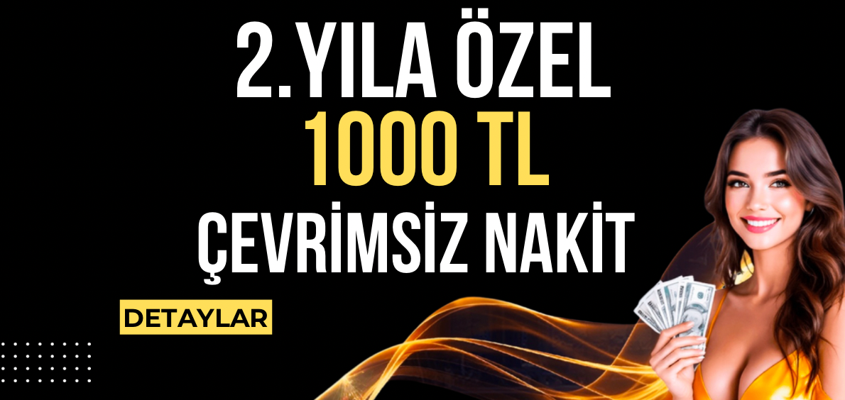 2. Yıla Özel Çevrimsiz Bonus! Kampanya Detayları: • 25.09.2025 tarihine kadar 1000 TL yatırım yapmış herkese ekstra 1000 TL çevrimsiz bonus verilecektir. • Bonus, yatırımı yaptığınız anda hesabınıza otomatik olarak eklenecektir. • Hiçbir çevrim şartı yoktur. İstediğiniz zaman direkt çekim talebi oluşturabilirsiniz. • Kampanya 03.10.2025 tarihine kadar geçerlidir. • Bu özel fırsat, 2. yıla özel hediye olarak sunulmaktadır. Yatırımınızı yapın, hesabınıza anında 1000 TL nakit bonus yansısın!